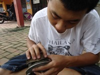 8. pukul perlahan spacer yang ada di kanan roda, setelah roda lepas, ambil kampas rem yg ada di dalam.